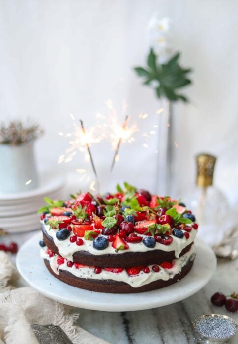 Vegan Chocolate Cake with Berries and Whipped Cream